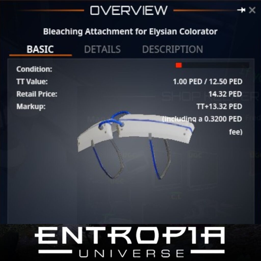 ขาย Bleaching Attachment for Elysian Colorator ในเกม Entropia Universe