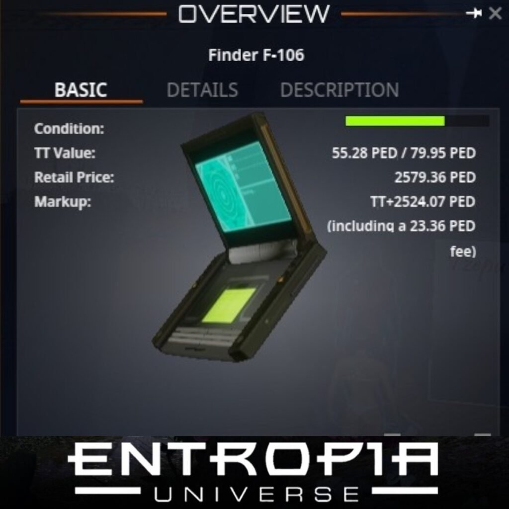Finder F-106 เป็นเครื่องมือที่ใช้ในการขุดค้นหาแร่ในเกม Entropia Universe