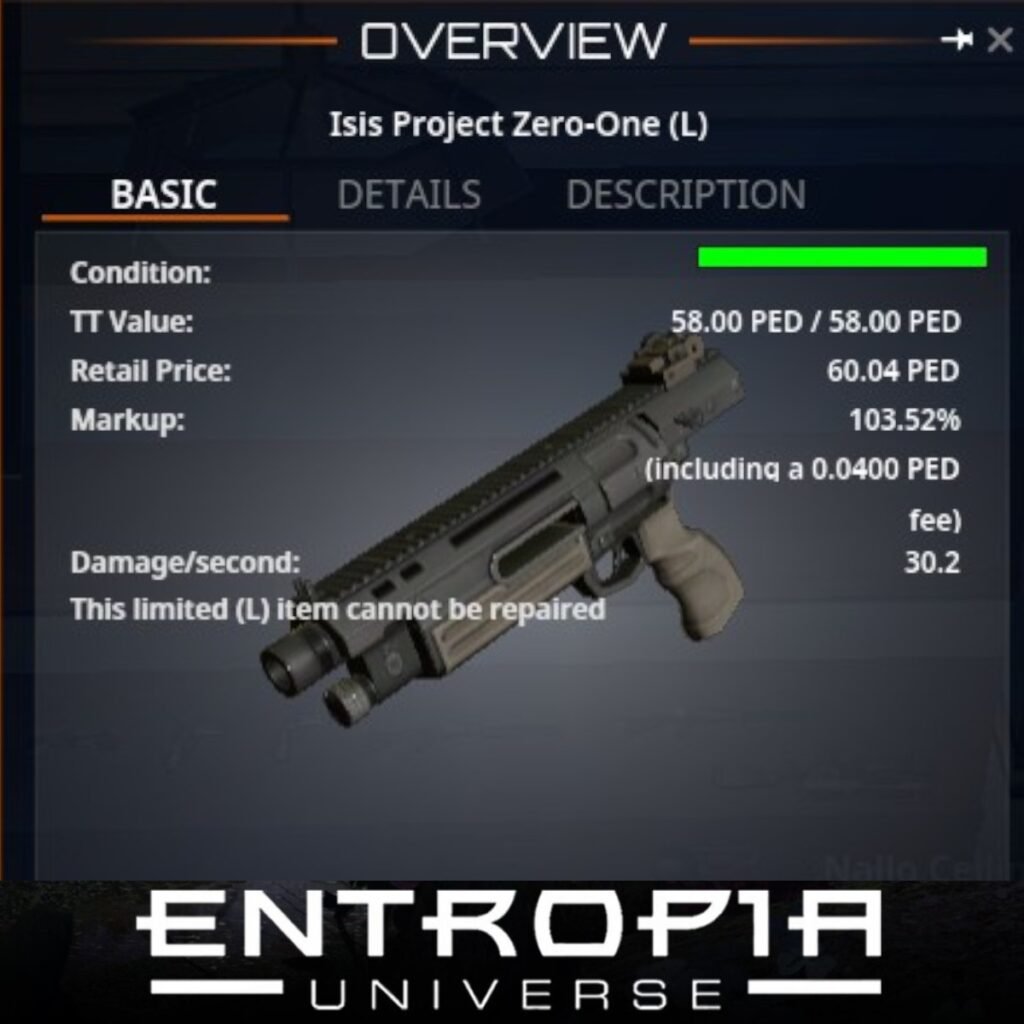 Isis Project Zero-One (L) เป็นอาวุธอีกหนึ่งประเภทในเกม Entropia Universe ที่มีคุณสมบัติและการใช้งานที่น่าสนใจ ดังนี้: