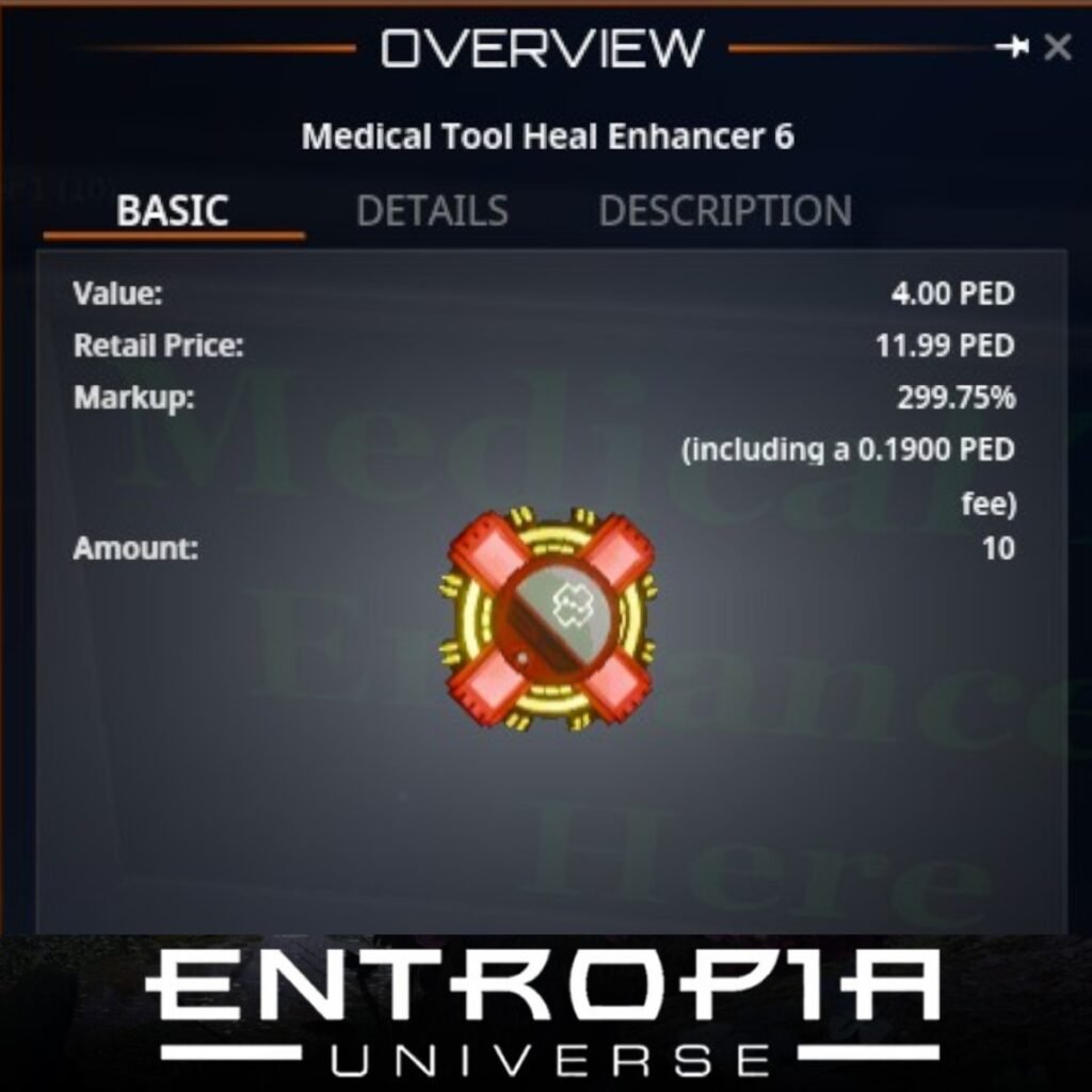 Medical Tool Heal Enhancer 6 เป็นอุปกรณ์เสริมที่มีประสิทธิภาพสูงสุดในกลุ่มเครื่องมือการแพทย์ในเกม Entropia Universe โดยออกแบบมาเพื่อเพิ่มความสามารถในการฟื้นฟูสุขภาพให้กับผู้เล่นได้อย่างรวดเร็วและมีประสิทธิภาพมากยิ่งขึ้น