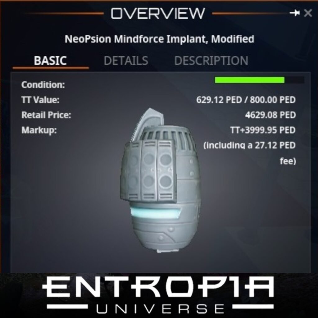 ขาย NeoPsion Mindforce Implant, Modified ในเกม Entropia Universe