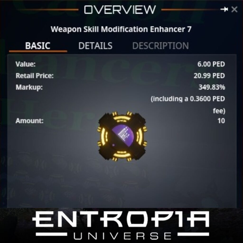 Weapon Skill Modification Enhancer 7 เป็นอุปกรณ์เสริมที่มีประสิทธิภาพสูงสุดในการปรับปรุงทักษะการใช้อาวุธของผู้เล่นในเกม Entropia Universe โดยมุ่งเน้นการเพิ่มความแม่นยำและความสามารถในการทำดาเมจอย่างมีนัยสำคัญ